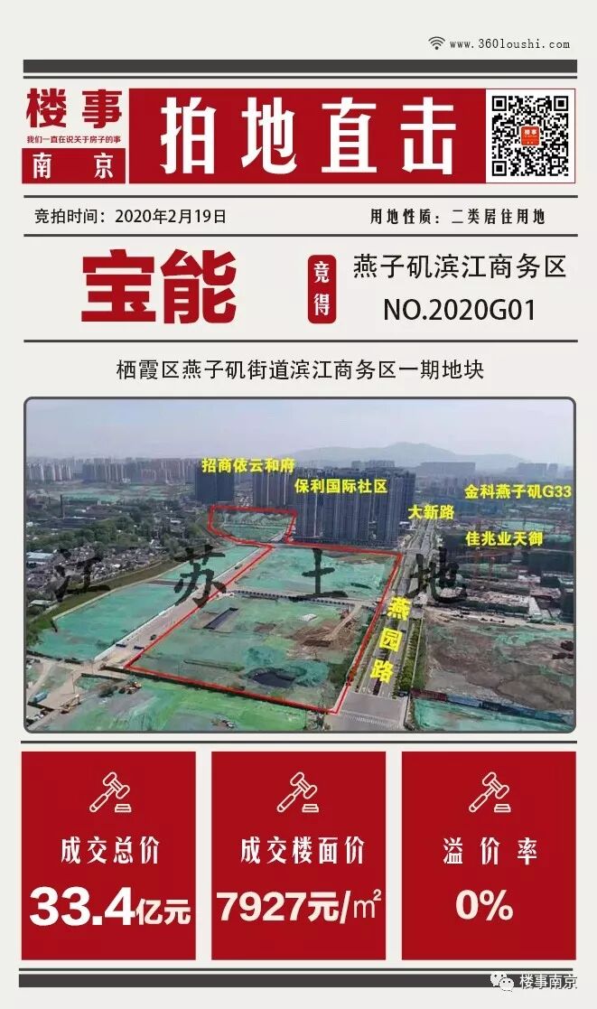 宝能以总价33.4亿元,楼面地价7927元/㎡拿下燕子矶滨江商务核心区地块,底价成交!
