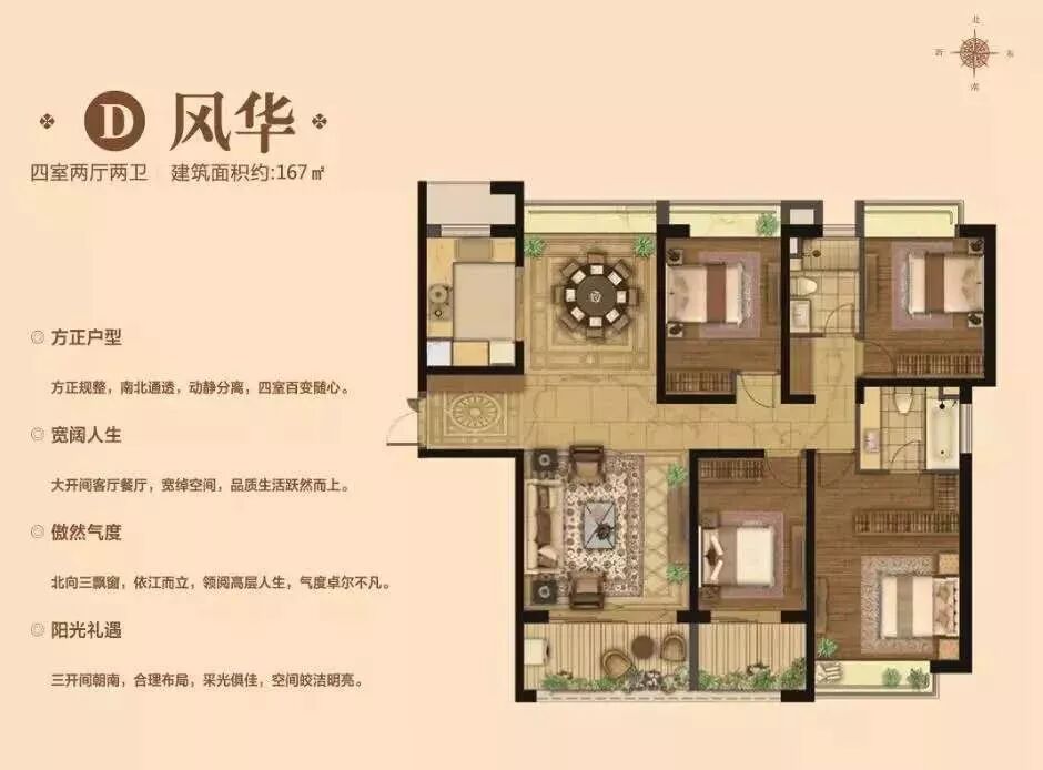据悉,项目在10月已经开放132㎡、167㎡、172㎡全部户型的样板间。